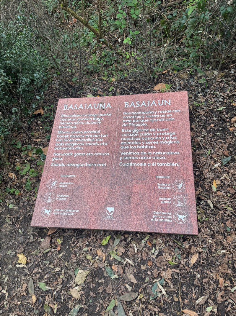 Rachel covered Basajauna in one her previous posts, if you scroll down to the section on Pinueta you can read a bit about his origin and our hike through the park in Leioa. For my part, I captured the sign on the right, covering his story in both Euskara and Castellano.
